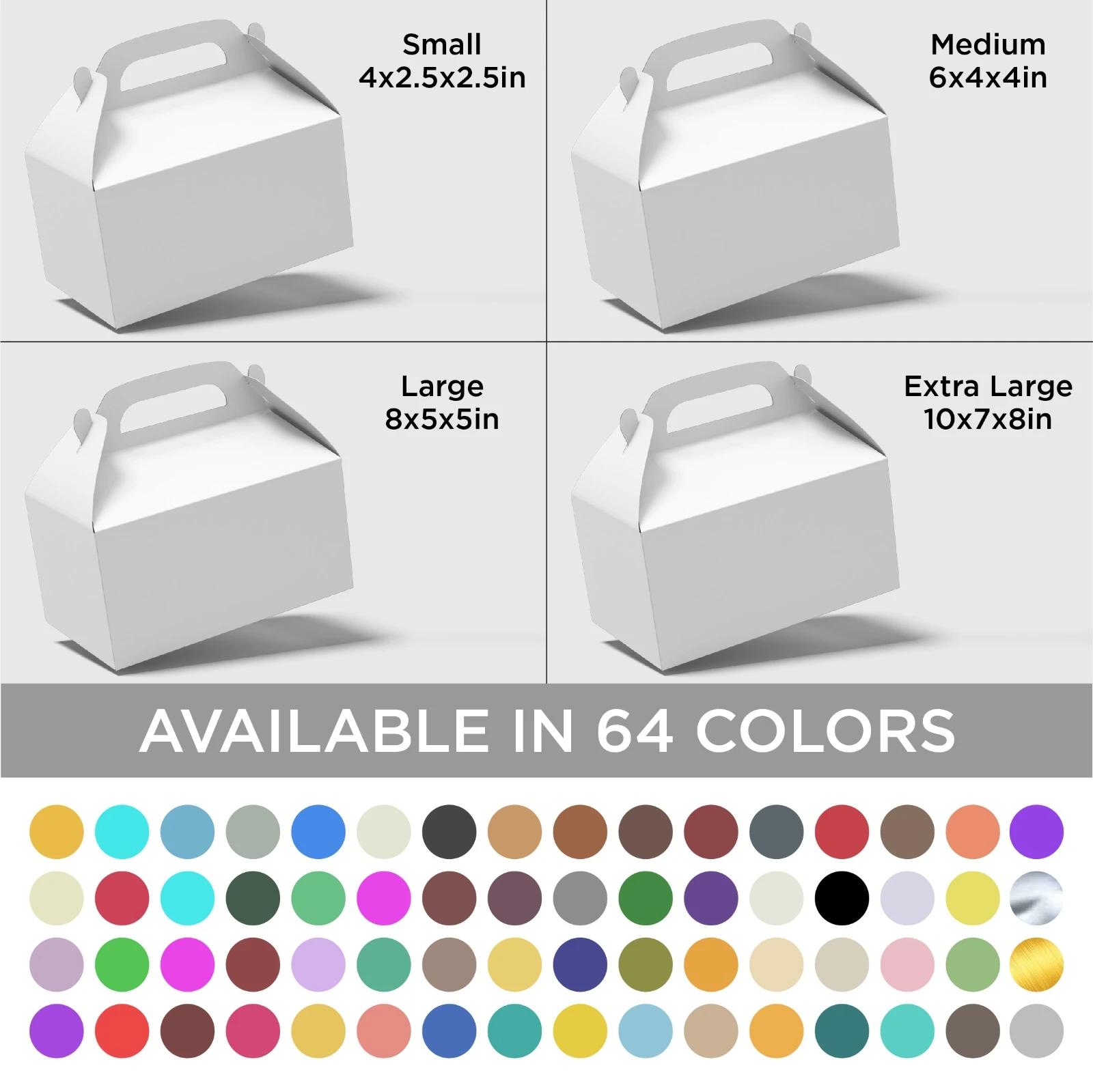 Gable style cardboard Gift Boxes with handle. Select your desired size and color.