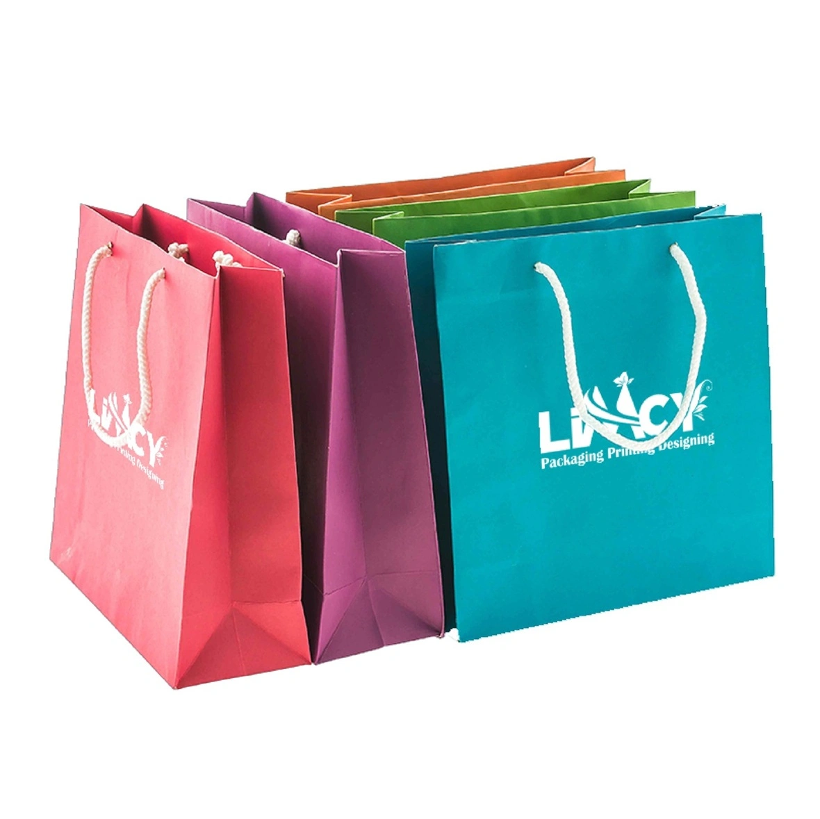 We offer custom printed paper bags with logo or with full color printing at wholesale price. Following specifications, features, and services are available for customization.