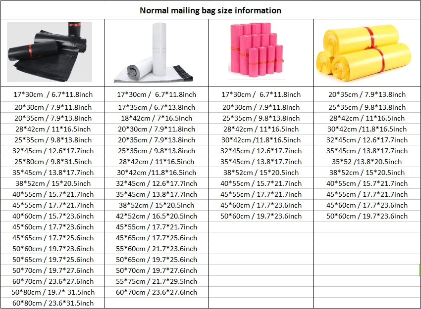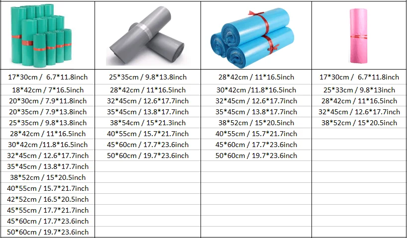 Sizes and Colors: Poly mailer bags are available in any standard or custom size and color.